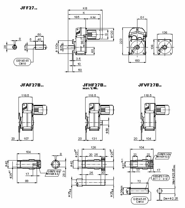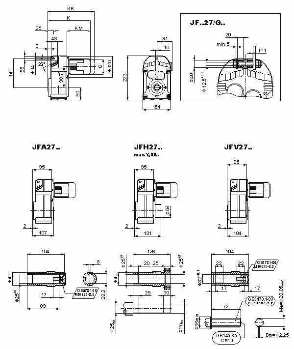 | 當前位置:減速機首頁 >> 產(chǎn)品大全 >> 減速電機 >> JF系列減速電機(GB10095-88) >> JF系列減速機外形安裝尺寸(JF27、JFA27B、JFH27B、JFV27B、JFF27、JFAF27B、JFHF27B、JFVF27B、JF..27/G、JFA27、JFH27、JFV27、JFAZ27、JFHZ27、JFVZ27)(GB10095-88) |