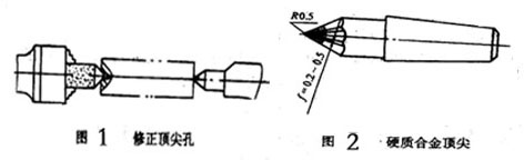用硬質(zhì)合金頂尖修研頂尖孔圖2所示為修研頂尖孔的硬質(zhì)合金頂尖,其結(jié)構(gòu)特點(diǎn)是在60度圓錐此刃帶具有微量切削作用,對頂尖孔幾何形狀有修正和擠光作用。這種方法生產(chǎn)率高,但質(zhì)量稍差,多用地普通軸頂尖孔修研,或作為精密軸頂尖孔的精研。