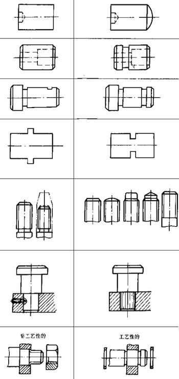 螺紋零件上應(yīng)盡量避免有環(huán)槽或臺(tái)階,頭部應(yīng)有便于插入螺孔的導(dǎo)向部分;在必須做成臺(tái)階件時(shí),不同直徑的結(jié)合部位應(yīng)平滑過渡 |