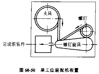 1)剛性單工位裝配機(jī),機(jī)電工程中典型的單工位自動(dòng)裝配機(jī)是螺釘自動(dòng)擰入機(jī)。圖60-50為單工位螺釘擰入裝配機(jī)的布置圖,由震動(dòng)料斗,螺釘自動(dòng)擰入裝置等組成。
