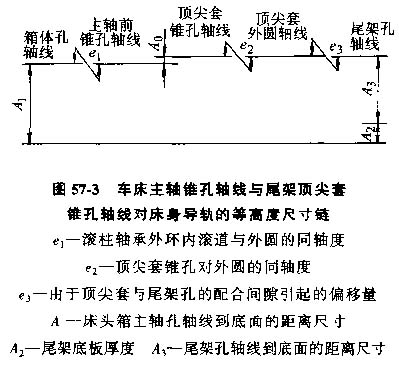 如果仔細(xì)查找,可以得到如圖57-2所示的以前、后頂尖高度差為封閉環(huán)的裝配尺寸連,相關(guān)零件有圖中的床頭箱、軸承、箱體、尾座頂尖套,尾座、尾座底板及圖中未示出的前、后頂尖和床身等。