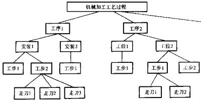 圖1-4 表示了某個零件機械加工工藝過程的組成情況,同時也說明了工序、安裝、工位、工步及走刀之間的關系。