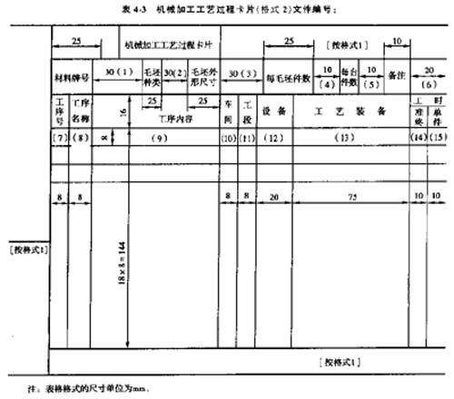 1)機械加工(或裝配)工藝過程卡,以工序為單位簡要說明產(chǎn)品、部件的加工(或裝配)過程的一種工藝文件。