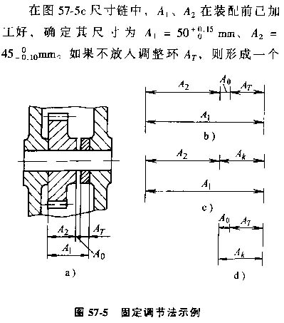 固定調(diào)整法選取某一個或某一組零件作為調(diào)整件,根據(jù)其他各組成環(huán)形成的累積誤差的數(shù)值來選擇不同尺寸的調(diào)整件,以保證裝配精度。
