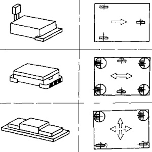 線導(dǎo)小車的導(dǎo)向方法是靠在地面敷設(shè)電磁感應(yīng)導(dǎo)線來引導(dǎo)小車,感應(yīng)線的敷設(shè)和停車位置的設(shè)定方法見圖50-67,過去因?yàn)楦袘?yīng)線埋沒在地溝內(nèi),要改變小車的行駛路線仍然比較困難,現(xiàn)在已可以采用帶狀導(dǎo)線或磁線涂料直接在地面上敷設(shè),所以大大增強(qiáng)了柔性制造系統(tǒng)布局的柔性,這種小車的緩沖自停精度較差。約為±30mm。若想達(dá)到較高的定位精度。需使用圓錐支點(diǎn)等機(jī)械定位裝置,使其定位精度可達(dá)±0.1mm。