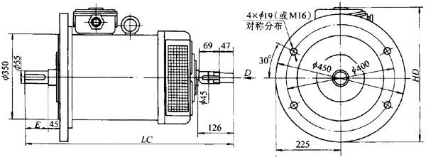 圖4   YTDP系列335型臥式,凸緣安裝型式(IM3002)(見表2)