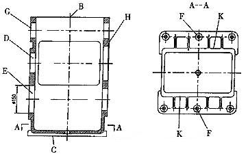 以刀庫(kù)中的鉆頭為校正工具,并使主軸以1000r/min的速度旋轉(zhuǎn),在兩側(cè)F面水平基準(zhǔn)線起止處鉆頭微切工件表面進(jìn)行試切,根據(jù)試切點(diǎn)與基準(zhǔn)線的相對(duì)位置,確定工件左右中心線是否在同一水平上,校正號(hào)工件F面兩側(cè)水平后,工作臺(tái)旋轉(zhuǎn)90°位置,采用同樣的方法校正工件B、C兩面基準(zhǔn)線。最后移動(dòng)Z軸,校正工件H面中心基準(zhǔn)線,看劃的線是否在中心上,如果不在,松或緊夾具上的調(diào)整螺栓5,微調(diào)工件位置,直到校正為止。各基準(zhǔn)線均校正好后,用壓板1將工件壓緊。