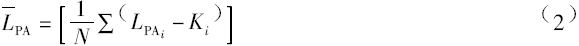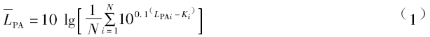 當(dāng)各測點(diǎn)的A計權(quán)聲壓級之差不超過5dB時,可由式2計算LPA: