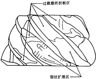 最終斷口面形貌可與過(guò)載折斷引起的一種或其他斷口面相對(duì)應(yīng)。