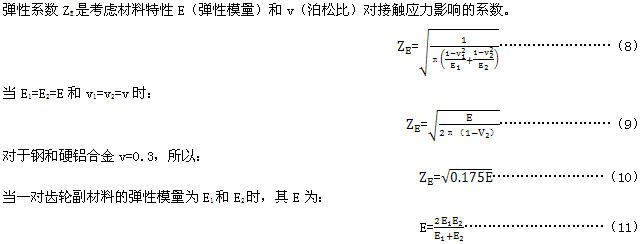 >>錐齒輪承載能力計(jì)算方法第 2 部分:齒面接觸疲勞(點(diǎn)蝕)強(qiáng)度計(jì)算彈性系數(shù)ZE(GB/T10062.2-2003)