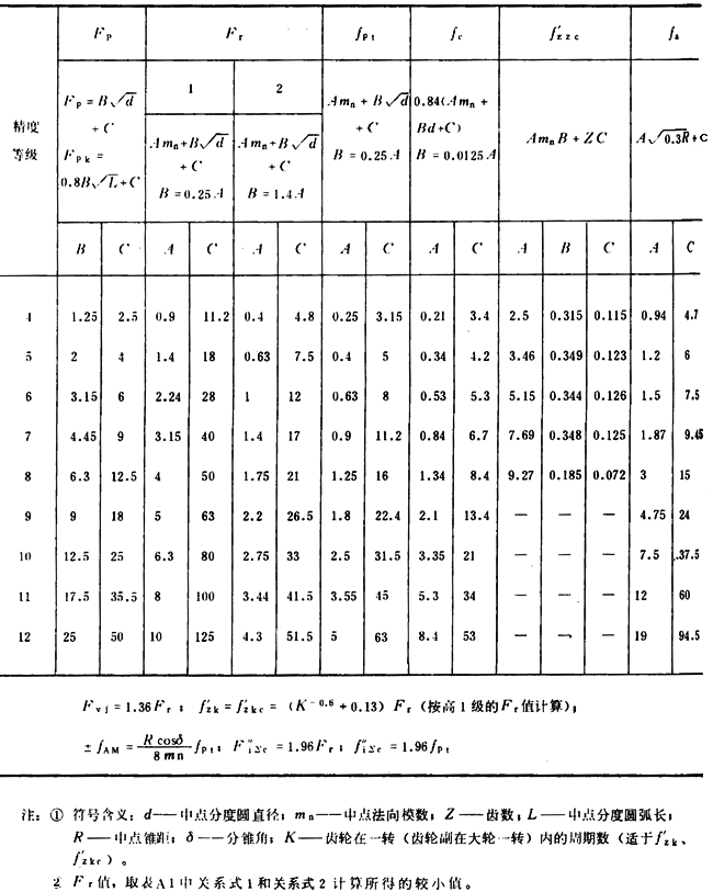A1切向綜合公差Fi′、一齒切向綜合公差fi′、軸交角綜合公差FiΣ″、一齒軸交角綜合公差fiΣ″值分別按下列關(guān)系式計(jì)算確定: