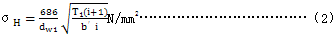 b.根據(jù)實(shí)測(cè)齒面未點(diǎn)蝕的當(dāng)量齒寬b′按下列簡化式計(jì)算齒面接觸應(yīng)力σH: