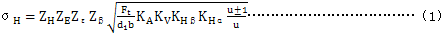 5.1.1漸開線圓柱齒輪齒面接觸應(yīng)力σH按式(1)計算:
