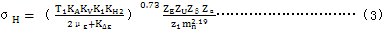 5.1.3雙圓弧齒輪齒面接觸應(yīng)力σH按式(3)計算: