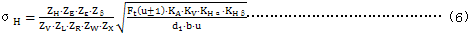 注:式(6)計算的接觸應(yīng)力已將試驗條件及試驗齒輪轉(zhuǎn)換為GB3480所要求的標準狀態(tài)。
