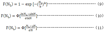 9.2在未知試驗齒輪的壽命分布函數(shù)時,一般采用二參數(shù)威布爾分布、對數(shù)正態(tài)分布或正態(tài)分布進行分布檢驗,確定分布類型。三種分布函數(shù)分別為: