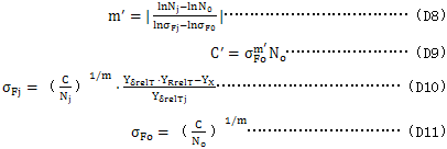 式中:Nj、σFj、YδrelTj的下標(biāo)j表示靜強(qiáng)度時(shí)的值,見圖D1。