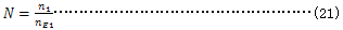 簡化了的齒輪嚙合振動模型存在一個(gè)臨界轉(zhuǎn)速nE1 ,小齒輪的運(yùn)行轉(zhuǎn)速n1與臨界轉(zhuǎn)速nE1的比值N稱為臨界轉(zhuǎn)速比,即
