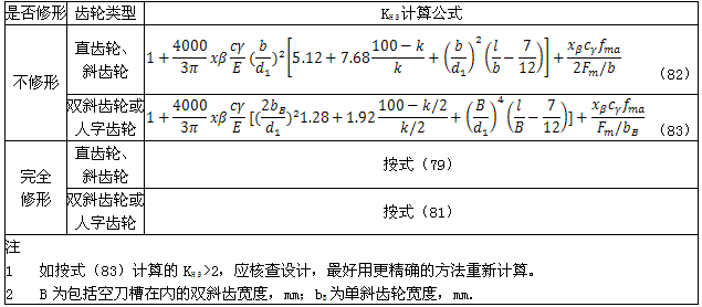 由于影響因素眾多,確切的載荷分布系數(shù)應(yīng)通過實際的精密測量和全面分析已知的各影響因素的量值綜合確定。這時,要論證應(yīng)用方法的精確度和可靠性,并明確其前提條件。這種方法特別適用于調(diào)質(zhì)小齒輪寬徑比b/d>1.5或硬齒面小齒輪b/d>1.2的重要齒輪裝置的校核計算。