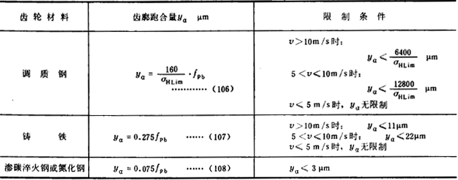 ②當(dāng)大、小齒輪的材料和熱處理不同時(shí),其齒廓跑合量可取為相應(yīng)兩種材料齒輪副跑合量的算術(shù)平均值。