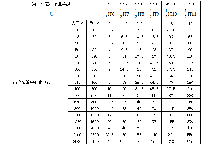 表2齒圈徑向跳動(dòng)公差Fr值            μm