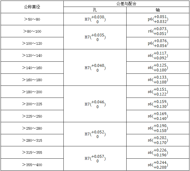 f.軸承孔尺寸公差帶為H7,表面粗糙度Rα不大于3.2μm。
