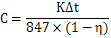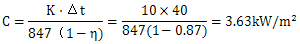 式中C——單位散熱面積的熱功率,KW/m2。由圖8-21和圖8-22查得,或按下式計(jì)算