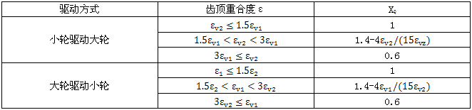 重合度系數(shù)Xε是將假定載荷全部作用于小輪齒頂時(shí)的局部瞬時(shí)溫升θflaE折算成沿沿嚙合線的積分平均溫升θflaint的系數(shù)。