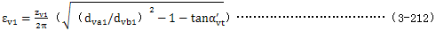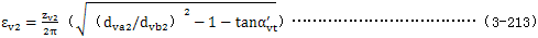 式中εv——齒頂重合度,取εv1或εv2中的較大者,εv1及εv2由公式(3-212)及(3-213)確定。