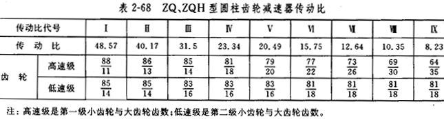 表2-69ZQ、ZQH型圓柱齒輪減速器實際傳動比