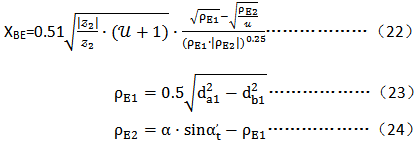 幾何系數(shù)XBE考慮小輪齒頂?shù)暮掌潙?yīng)力與滑動(dòng)速度的影響。XBE是齒數(shù)比u與小輪齒頂E點(diǎn)處曲率半徑ρE的函數(shù)。