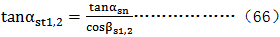 γ1,2=srctanγ1,2­=arc(sinαsn·tanβs1,2)………………………………(86)