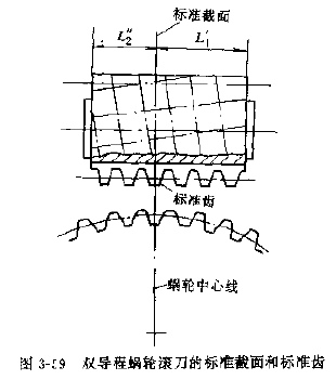 蝸輪剃齒刀的齒頂不參加工作,一般比工作蝸桿的齒頂高增大0.1mx(mx為蝸桿槽數(shù))(見圖5-68)。