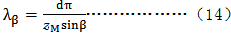 由于原因a)所造成的波度的波長,在沿螺旋線方向測量時,等于進給絲杠的螺距除以cosβ。