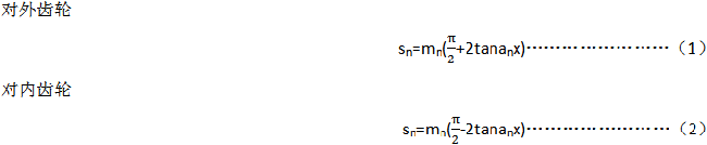在分度圓柱上法向平面的“公稱齒厚sn”是指齒厚理論值,該齒輪與具有理論齒厚的相配齒輪在基本中心距之下無側隙嚙合。公稱齒厚可用下列公式計算。