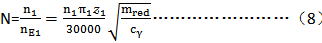 在多點嚙合齒輪系中有多個固有頻率,這些頻率可能高于或低于只有一點嚙合的單級齒輪副的固有頻率。當(dāng)這樣的齒輪在超臨界區(qū)運轉(zhuǎn)時,建議用A法進行分析,見ISO6336-1:1996的6.3.1。