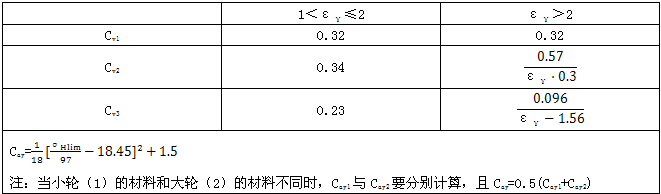 由跑合而產(chǎn)生的Cay值在齒輪不規(guī)定齒廓修形的情況下,代替公式中的Ca。Ca可由表3查取。單對齒剛度c′見附錄B。