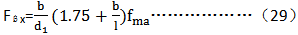 對于具用螺旋線修形與鼓形修形或沒有螺旋線修形的產(chǎn)品目錄中所列裝置的齒輪副使用公式(27)。這種情況下,齒輪副的位置,軸的變形、軸承、懸臂載荷均應(yīng)考慮5)(5)例如,當(dāng)選用系數(shù)為1.0時,產(chǎn)品目錄中所列齒輪箱功率為400KW,把螺旋線修形與鼓形修形用于表4中的齒輪,沒有檢驗接觸斑點,在產(chǎn)品目錄中所列速度下,實際傳遞的功率將小于400kw。對于400kw的情況可用式(27)計算,當(dāng)實際傳遞功率低于400KW時,雖然Fβx與KHβ較高,總的輪齒應(yīng)力也將較低。若將以上裝置中齒輪也用在其他的齒輪箱中可采用名義鼓形量,選擇這個鼓形量適應(yīng)所有可能的位置,但不是每個功率級和位置的最佳鼓形量。對于這些情況可應(yīng)用式(29)。)