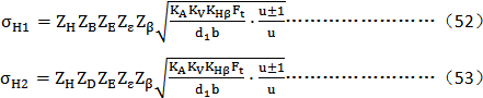 小輪和大輪的計算接觸應(yīng)力σH1和σH2分別按下述兩式確定: