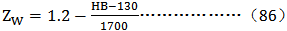 工作硬化系數(shù)ZW是考慮鋼制大齒輪(結(jié)構(gòu)鋼、調(diào)質(zhì)鋼)與光整齒面(Rz≤6μm)的硬化小齒輪相嚙合,從而使大齒輪齒面承載能力得能提高的系數(shù)。