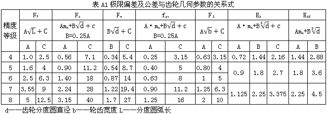 表A1極限偏差及公差與齒輪幾何參數的關系式