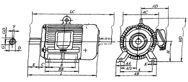 圖4 YT80~112M-H外形尺寸圖(B5)(見表4)