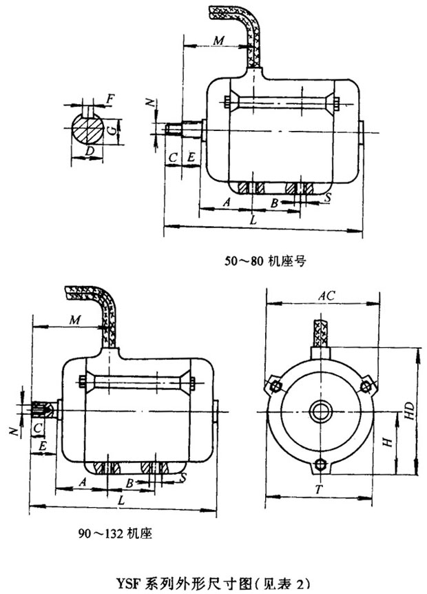 YSF系列軸流風(fēng)機專用三相異步電動機外形及安裝尺寸 |