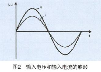 此時能量從電網(wǎng)經(jīng)由整流回路和逆變回路流向電機,變頻器工作在第一、第三象限。輸入電壓和輸入電流的波形如圖2所示。