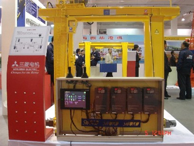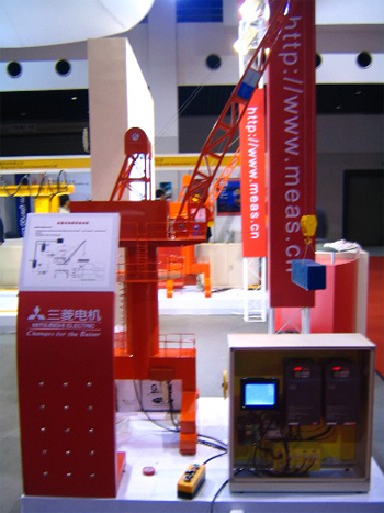 在2008年4月舉行的“第二屆中國(上海)國際起重機械及配件展覽會”上,三菱電機首次向眾人展示了起重行業(yè)的綜合解決方案。6套色彩鮮艷并按真實起重機等比縮小的模型,演示著6項各不相同的控制功能,吸引了觀眾的目光。功能簡介如下: