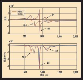 圖3:某些工程師可能將這些圖看成是頻率響應(yīng)圖的“真實”和“想象”成分。但是這里不需要理解它是什么含義。圖形表示在某個給定的應(yīng)用場合以不同懸伸長度使用同一把刀具發(fā)生顫振的趨勢。振幅較高意味著發(fā)生顫振的趨勢較高。這些圖表示,在將長徑比從8:1增加到9:1時,增加懸伸長度會增加顫振的趨勢。但是,當這種比例增加到10:1時,這種趨勢又倒過來了,此時卻產(chǎn)生了更加穩(wěn)定的懸伸值。