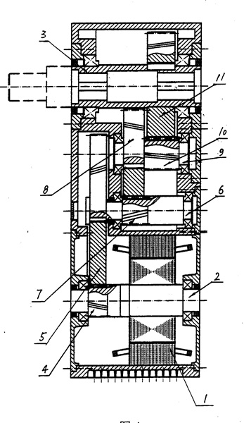 | 一種整體式電機(jī)減速機(jī),其特征在于:在箱體內(nèi)裝有電機(jī)(1)及傳動(dòng)裝置,電機(jī)軸(2)上安裝有第一級(jí)傳動(dòng)部件,輸出軸(3)上裝有最后一級(jí)的傳動(dòng)部件,通過(guò)輪系傳動(dòng)系統(tǒng),將電機(jī)軸(2)的轉(zhuǎn)速和轉(zhuǎn)矩傳遞給輸出軸(3)。 |