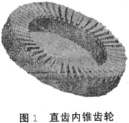 近幾年來(lái),隨著科學(xué)技術(shù)的高速發(fā)展,人們又研制出了一種很有發(fā)展前途的減速傳動(dòng)裝置——章動(dòng)齒輪傳動(dòng)系統(tǒng),與傳統(tǒng)的齒輪減速裝置相比,該傳動(dòng)系統(tǒng)不僅能實(shí)現(xiàn)大傳動(dòng)比傳動(dòng),而且具有傳動(dòng)平穩(wěn)、結(jié)構(gòu)緊湊、承載能力強(qiáng)、壽命長(zhǎng)等優(yōu)點(diǎn),因此受到各個(gè)行業(yè)及科研單位的廣泛關(guān)注。但是由于其關(guān)鍵部件內(nèi)錐齒輪(如圖1所示)加工制造困難,在很大程度上制約了該傳動(dòng)系統(tǒng)的廣泛應(yīng)用。雖然使用的刀具價(jià)格非常昂貴,而且裝夾困難。下面提出了利用直齒錐齒輪刨齒機(jī)和萬(wàn)能銑床加工內(nèi)錐齒輪的方法。