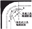 圖9 附加走刀路徑細(xì)化示意圖 采用圓角處刀具路徑細(xì)化方案,可以有效的保持穩(wěn)定切削,減小因切削力突變而引起的加工變形和可能發(fā)生的切削振動(dòng),提高了零件的加工質(zhì)量。 當(dāng)然,在圓角切削力實(shí)驗(yàn)中,我們還發(fā)現(xiàn),逆銑時(shí)切屑厚度是由薄到厚,由于刃口尺寸效應(yīng),在刀刃剛接觸工件時(shí),后刀面與工件之間的摩擦較大,易于引起振動(dòng),拐角處會(huì)出現(xiàn)嚴(yán)重的斜向振紋。順銑則剛好相反,雖然順銑的切削力稍大于逆銑時(shí)的切削力,但是在切削拐角處時(shí),不會(huì)產(chǎn)生明顯的振紋。不過順銑時(shí)切屑厚度是由厚到薄,對(duì)工件和刀具的沖擊力較大,在加工時(shí)盡可能減少刀具的懸伸長(zhǎng)度和增加工件的剛性。 4 其它高效銑削加工技術(shù) 進(jìn)給量的局部?jī)?yōu)化法與刀具偏擺數(shù)控補(bǔ)償技術(shù)作為數(shù)控加工前期的工藝優(yōu)化和質(zhì)量保證研究,分別從抑制加工變形和有效補(bǔ)償加工變形的思想出發(fā),二者均應(yīng)用了有限元技術(shù)來建立零件的加工變形模型,并分析處理加工過程中的加工變形狀況。 進(jìn)給量的局部?jī)?yōu)化方法是針對(duì)恒定進(jìn)給量提出的。因?yàn)榱慵骋槐砻嫔细鞑糠值膭傂约扒邢髁Φ拇蟆 ⌒〔煌? 受力變形情況也不一樣。利用有限元分析軟件進(jìn)行分析后得到變形分布圖, 可以看到有些位置的變形大, 有些位置的變形小。如果采用恒定的進(jìn)給量, 為了保證變形量最大的位置能達(dá)到質(zhì)量要求,整個(gè)表面就得全部采用很小的進(jìn)給量, 而進(jìn)給量的局部?jī)?yōu)化就是在變形小的地方采用大進(jìn)給量,而在變形大的地方采用小的進(jìn)給量。這樣可以在保證變形量的同時(shí), 提高效率, 減少成本。實(shí)驗(yàn)研究表明, 采用該方法在提高加工質(zhì)量的同時(shí)可以節(jié)省約60%的加工時(shí)間。 刀具偏擺數(shù)控補(bǔ)償技術(shù),是在有限元分析基礎(chǔ)上, 根據(jù)模擬仿真加工變形的大小,在數(shù)控編程時(shí)讓刀具在原有走刀軌跡中按變形情況附加補(bǔ)償運(yùn)動(dòng),補(bǔ)償因切削力作用而產(chǎn)生的變形。對(duì)側(cè)壁加工,通過偏擺刀具進(jìn)行補(bǔ)償;對(duì)腹板加工,則補(bǔ)償軸向切深。通過數(shù)控補(bǔ)償, 可以將因變形而產(chǎn)生的殘余材料切除, 一次走刀即可保證薄壁件側(cè)壁或腹板精度,從而達(dá)到高效、經(jīng)濟(jì)、優(yōu)質(zhì)加工薄壁零件的目的。 5 結(jié)論 以上介紹和分析了當(dāng)今國內(nèi)外有關(guān)薄壁結(jié)構(gòu)的高效銑削加工技術(shù)研究狀況。目前,國內(nèi)外對(duì)于薄壁結(jié)構(gòu)的加工變形研究主要在靜態(tài)分析方面,而對(duì)于薄壁結(jié)構(gòu)的加工變形研究的動(dòng)態(tài)分析還不成熟。當(dāng)然,對(duì)于薄壁結(jié)構(gòu)的高效銑削加工技術(shù)研究,可以從機(jī)床、夾具、刀具、工件以及切削參數(shù)與走刀路徑等不同方面進(jìn)行優(yōu)化分析。 隨著高速切削技術(shù)與有限元技術(shù)的進(jìn)一步發(fā)展與完善,數(shù)控加工前期的工藝優(yōu)化和質(zhì)量保證研究工作日顯突出。利用理論分析和實(shí)驗(yàn)相結(jié)合建立工件變形模型;通過模擬分析替代大量的實(shí)驗(yàn)研究工作來優(yōu)化切削參數(shù)與走刀路徑;根據(jù)批量生產(chǎn)的實(shí)際需要研究、開發(fā)新型刀具、夾具,努力提高機(jī)床的性能。薄壁結(jié)構(gòu)的高效銑削加工技術(shù)定會(huì)得到較大的發(fā)展,薄壁結(jié)構(gòu)的應(yīng)用會(huì)更加廣泛。