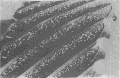 蝸桿螺旋工作面頂部的明顯飛邊。這種飛邊是由于壓力和沿有效齒面滑動的作用產(chǎn)生塑性變形所致。